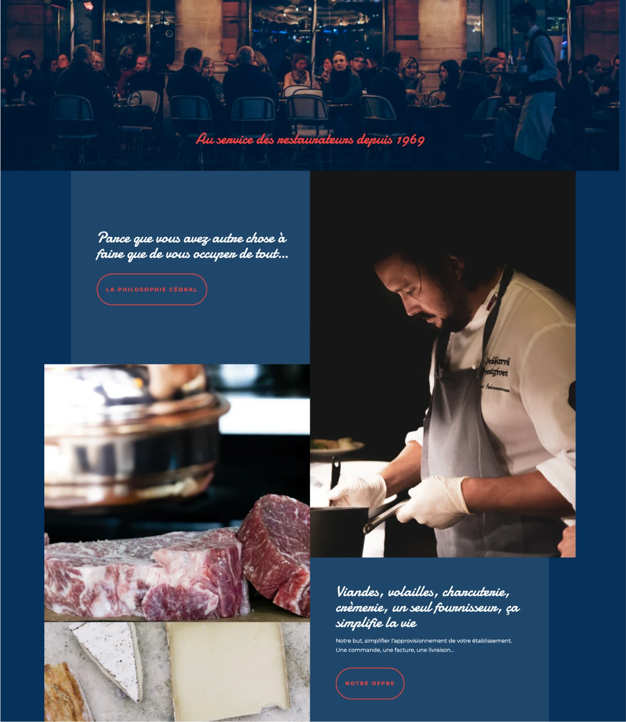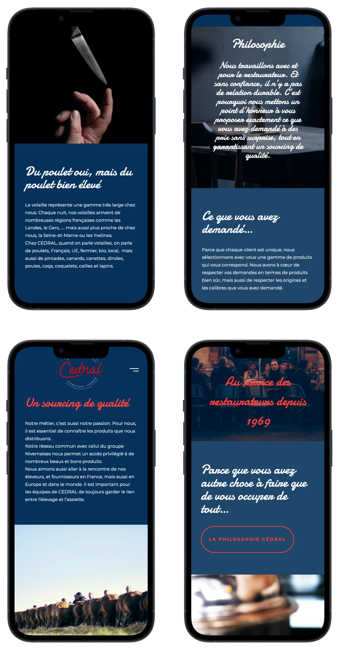 “Si ça existe, nous ferons tout pour le trouver”, telle est la devis de Cedral, cette entreprise installée depuis 1969 sur le MIN de Rungis. Avec une telle promesse, nous avons choisi de proposer une identité autour de la forme arrondie pour évoquer la “globalité” ainsi qu’une palette de couleurs évoquant la France, car “impossible n’est pas français”. Cette identité s’est déclinée sur une flotte de camions qui sont autant d’ambassadeurs de la marque et arborent fièrement ce bleu profond et ce rouge vif qui font la signature visuelle de la marque. Tout naturellement, la plateforme digitale qui en découle reprend les mêmes codes pour la plus grande cohérence.
